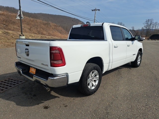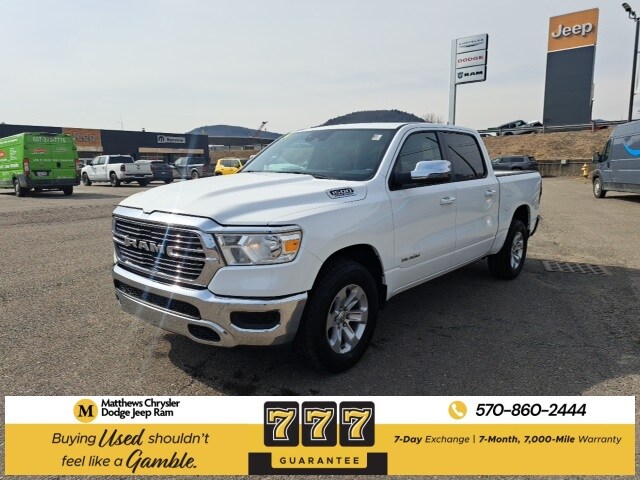 Well Equipped with: Quick Order Package 27H Laramie, FCA US LLC Certified Pre-Owned Certified, 10 Speakers, 3 Rear Seat Head Restraints, 3.21 Rear Axle Ratio, 4 Way Front Headrests, 4-Wheel Disc Brakes, 48V Belt Starter Generator, 4G LTE Wi-Fi Hot Spot, ABS brakes, Air Conditioning, Alloy wheels, AM/FM radio: SiriusXM with 360L, Apple CarPlay, Apple CarPlay/Android Auto, Audio memory, Auto-dimming door mirrors, Auto-Dimming Exterior Driver Mirror, Auto-dimming Rear-View mirror, Automatic temperature control, Brake assist, Bumpers: chrome, Chrome Exterior Mirrors, Compass, Connected Travel & Traffic Services, Connectivity - US/Canada, Convex Wide-Angle Exterior Mirror Insert, Delay-off headlights, Driver door bin, Driver Seat Memory, Driver vanity mirror, Dual front impact airbags, Dual front side impact airbags, Electronic Stability Control, Exterior Mirrors Courtesy Lamps, Exterior Mirrors w/Heating Element, Exterior Mirrors w/Memory, Exterior Mirrors w/Supplemental Signals, For Details, Visit DriveUconnect.com, For More Info, Call 800-643-2112, Front anti-roll bar, Front Center Armrest w/Storage, Front dual zone A/C, Front fog lights, Front License Plate Bracket, Front reading lights, Front Seat Back Map Pockets, Front wheel independent suspension, Fully automatic headlights, Garage door transmitter, Global Telematics Box Module (TBM), Google Android Auto, GPS Navigation, HD Radio, Heated door mirrors, Heated Front Seats, Heated front seats, Heated Steering Wheel, Heated steering wheel, Illuminated entry, Integrated Voice Command w/Bluetooth, Leather steering wheel, Leather Trim 40/20/40 Bench Seat, Low tire pressure warning, Manufacturer's Statement of Origin, Memory seat, Navigation System, Occupant sensing airbag, Outside temperature display, Overhead airbag, Overhead console, Panic alarm, ParkView Rear Back-Up Camera, Passenger door bin, Passenger vanity mirror, Power 2-Way Driver Lumbar Adjust, Power 2-Way Passenger Lumbar Adjust, Power 8-Way Driver & Passenger Seats, Power door mirrors, Power driver seat, Power passenger seat, Power steering, Power windows, Power-Folding Mirrors, Radio data system, Radio: Uconnect 5 Nav w/8.4" Display, RAM Grille Badge - Chrome, Rear 60/40 Folding Seat, Rear anti-roll bar, Rear seat center armrest, Rear step bumper, Remote keyless entry, Security system, SiriusXM Radio Service, SiriusXM w/360L, Speed control, Split folding rear seat, Steering wheel mounted audio controls, Tachometer, Telescoping steering wheel, Tilt steering wheel, Traction control, Trip computer, Turn signal indicator mirrors, USB Host Flip, Variably intermittent wipers, Ventilated Front Seats, Ventilated front seats, Voltmeter, and Wheels: 18" x 8" Aluminum Base PainteD.