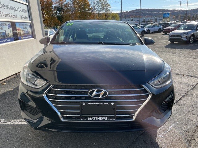 Vestal, NY 13850. Absolute Black Pearl 2022 Hyundai SE Accent FWD CVT 1.6L I4 PDI DOHC 16V LEV3-ULEV125 120hp
