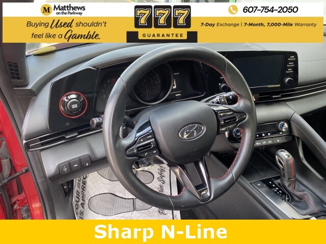 Our 2022 Hyundai Elantra N Line shines in Scarlet Red Pearl! This sedan is a stylish and feature-packed vehicle. Comfortable and spacious interior with modern amenities that enhance your driving experience.