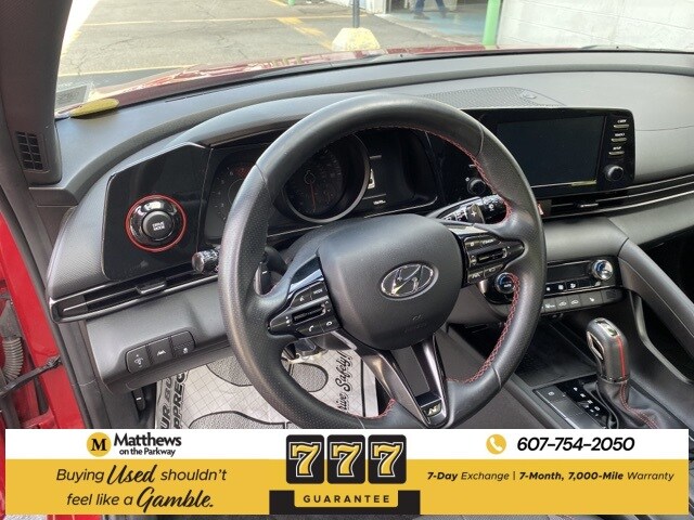 Our 2022 Hyundai Elantra N Line shines in Scarlet Red Pearl! This sedan is a stylish and feature-packed vehicle. Comfortable and spacious interior with modern amenities that enhance your driving experience.